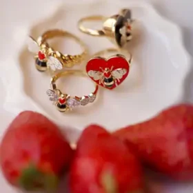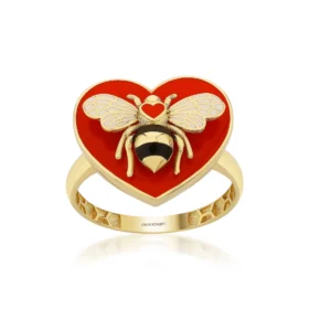 Bee Mine Altın Kırmızı Kalp Yüzük