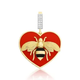 Bee Mine Altın Kırmızı Kalp Kolye Ucu