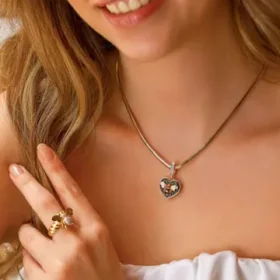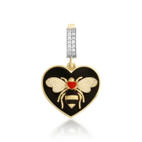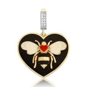 Bee Mine Altın Siyah Kalp Kolye Ucu