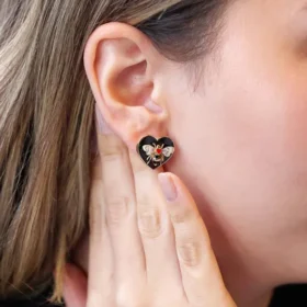 Bee Mine Altın Siyah Kalp Küpe