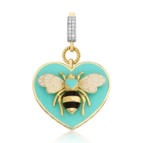 Bee Mine Altın Turkuaz Kalp Kolye Ucu