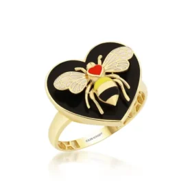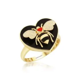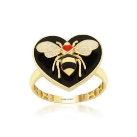 Bee Mine Altın Siyah Kalp Yüzük