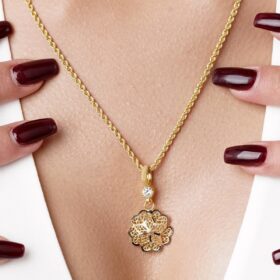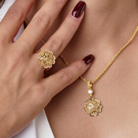 14 Ayar Altın Gül Motifli Telkari Set – Anne Seti