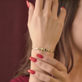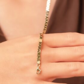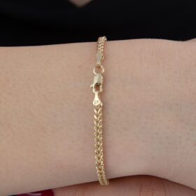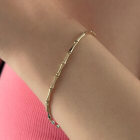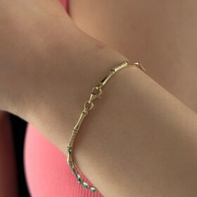 14 Ayar Altın Kemik Desenli Taşlı Bileklik