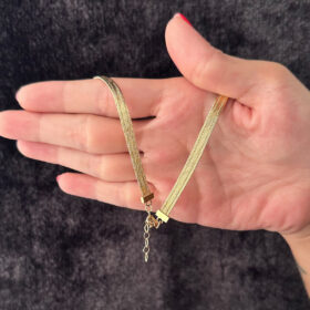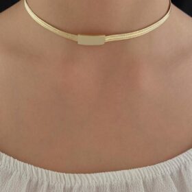 14 Ayar Altın Dikdörtgen Plaka Detaylı Hasır Kolye
