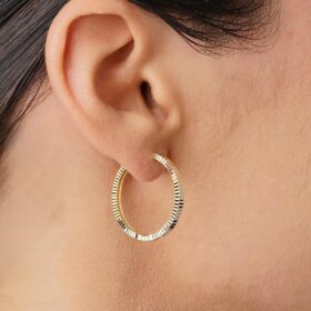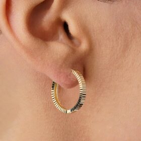 14 Ayar Altın Kalem İşlemeli Işıltı Halka Küpe Midi