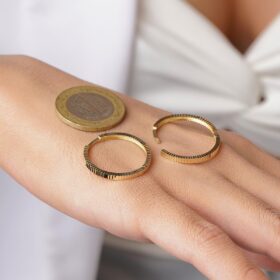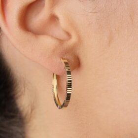 14 Ayar Altın Kalem İşlemeli Işıltı Halka Küpe Orta