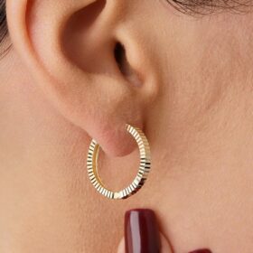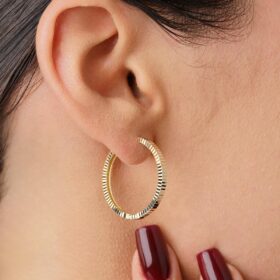 14 Ayar Altın Kalem İşlemeli Işıltı Halka Küpe Büyük