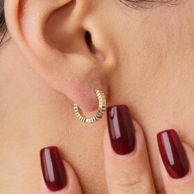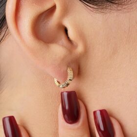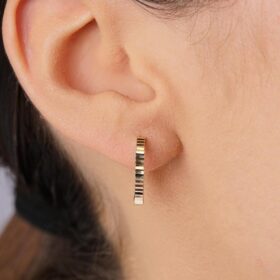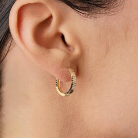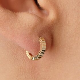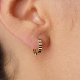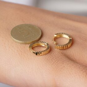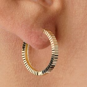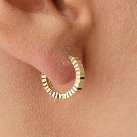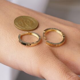14 Ayar Altın Kalem İşlemeli Işıltı Halka Küpe Mini
