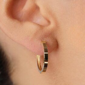14 Ayar Altın Kalem İşlemeli Işıltı Halka Küpe Küçük