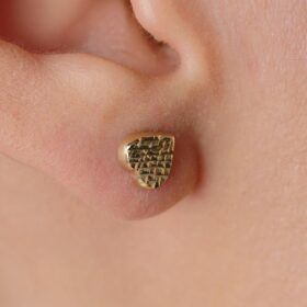 14 Ayar Altın Kalem İşlemeli Kalp Küpe