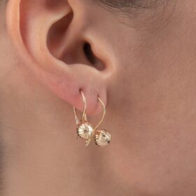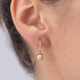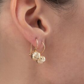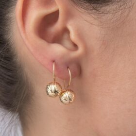 14 Ayar Altın Kalem İşlemeli Mini Top Küpe