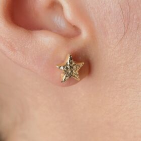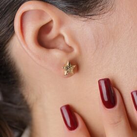 14 Ayar Altın Kalem İşlemeli Yıldız Küpe