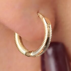 14 Ayar Altın Kalemli Mini Ajda Halka Küpe