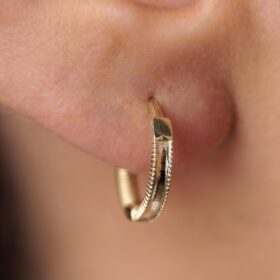 14 Ayar Altın Kalemli Mini Halka Küpe