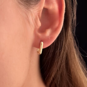 14 Ayar Altın Kalın Dikdörtgen Küpe