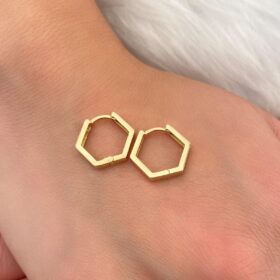 14 Ayar Altın Kalın Küçük Altıgen Küpe