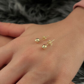 14 Ayar Altın Kare Desenli Top Küpe Orta