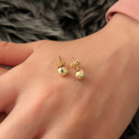14 Ayar Altın Kare Desenli Top Küpe Küçük