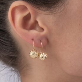 14 Ayar Altın Desenli Top Küpe Orta