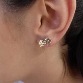 14 Ayar Altın Düz Yonca Küpe