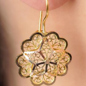 14 Ayar Altın Gül Motifli Telkari Küpe – Anne Küpesi