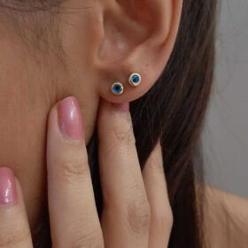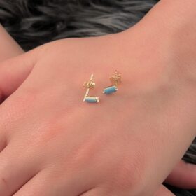 14 Ayar Altın Firuze Taşlı Baget Küpe