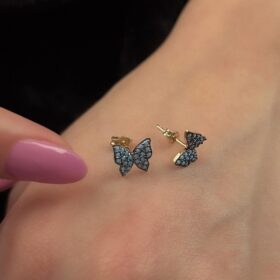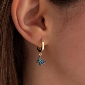 14 Ayar Altın Firuze Taşlı Kelebek Küpe