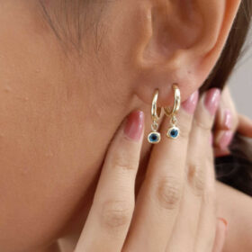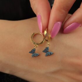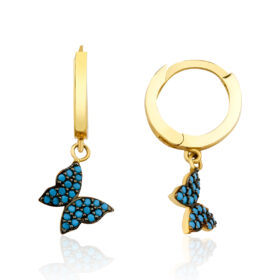 14 Ayar Altın Firuze Taşlı Kelebek Sallantılı Halka Küpe