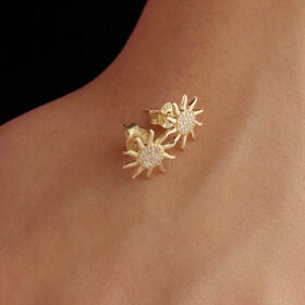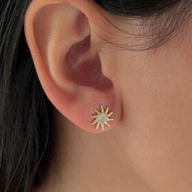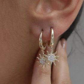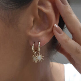 14 Ayar Altın Güneş Obje Sallantılı Küpe