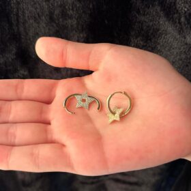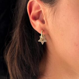 14 Ayar Altın Halka İçi Yıldız Detaylı Küpe