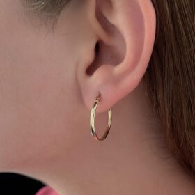 14 Ayar Altın İnce Bombeli Halka Küpe