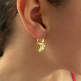 14 Ayar Altın Halka Sallantılı Yonca Küpe