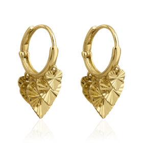 14 Ayar Altın Halka Sallantılı Kalp Sıralı Küpe