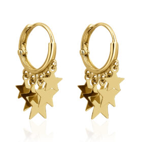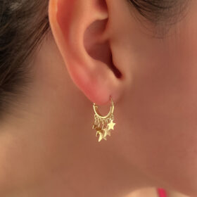 14 Ayar Altın Halka Sallantılı Yıldız Sıralı Küpe