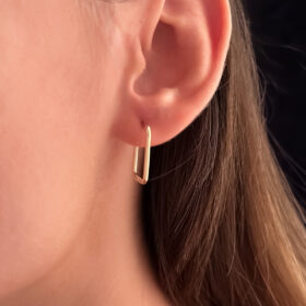 14 Ayar Altın İnce Dikdörtgen Küpe