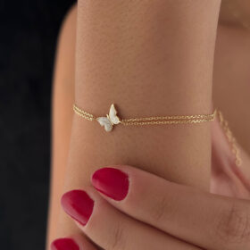 14 Ayar Altın Beyaz Mineli Kelebek Bileklik