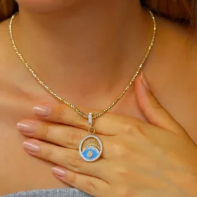 Altın Mavi Göz Kolye