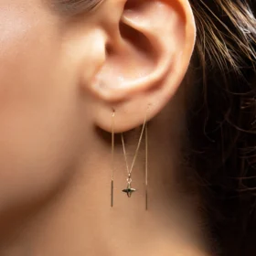Minimal Halka Görünüm Simetrik Taşlı Altın Küpe
