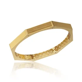 22 Ayar Görünümlü 14 Ayar Altın Köşeli Ajda Bilezik Kelepçe