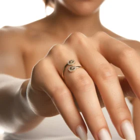 Flamenko Taşlı Çift Başlı Sarmal Altın Yüzük