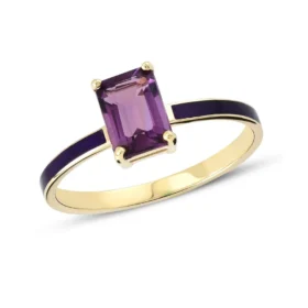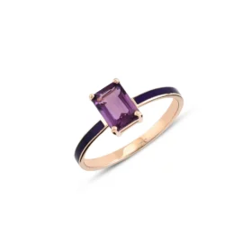 Mor Taşlı Altın Lotus Yüzük