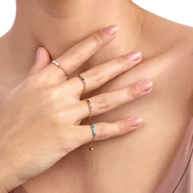 Rhythm Mini Taşlı Octagon Altın Yüzük