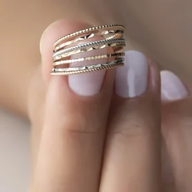 Üç Sıra Taşlı Altın Yüzük