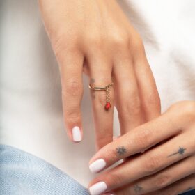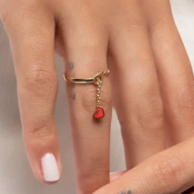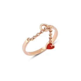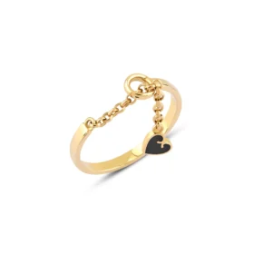 Zincir Sallantılı Kalp Mineli Altın Yüzük