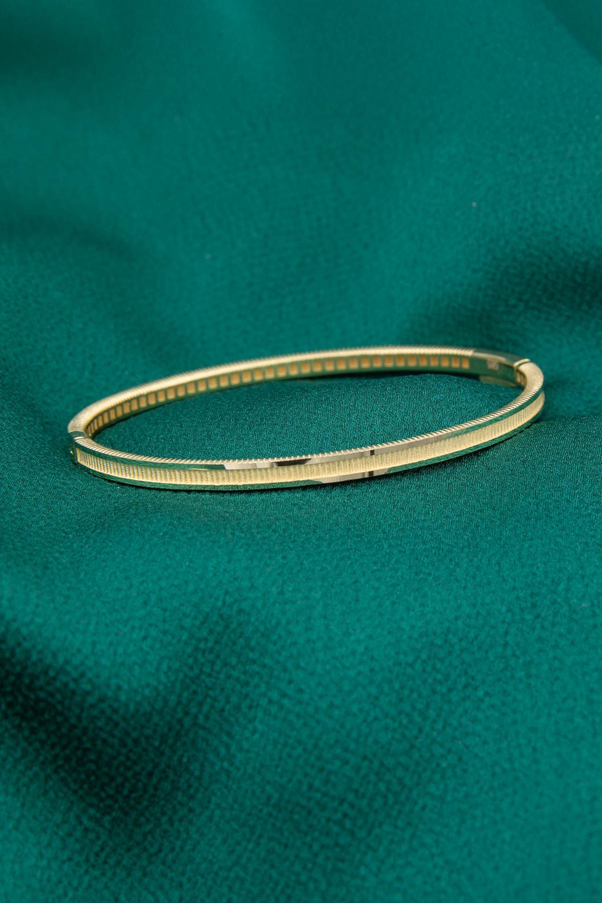 Bu bilezik, 14 ayar altından üretilmiş olup günlük kullanıma uygun şekilde tasarlanmıştır.