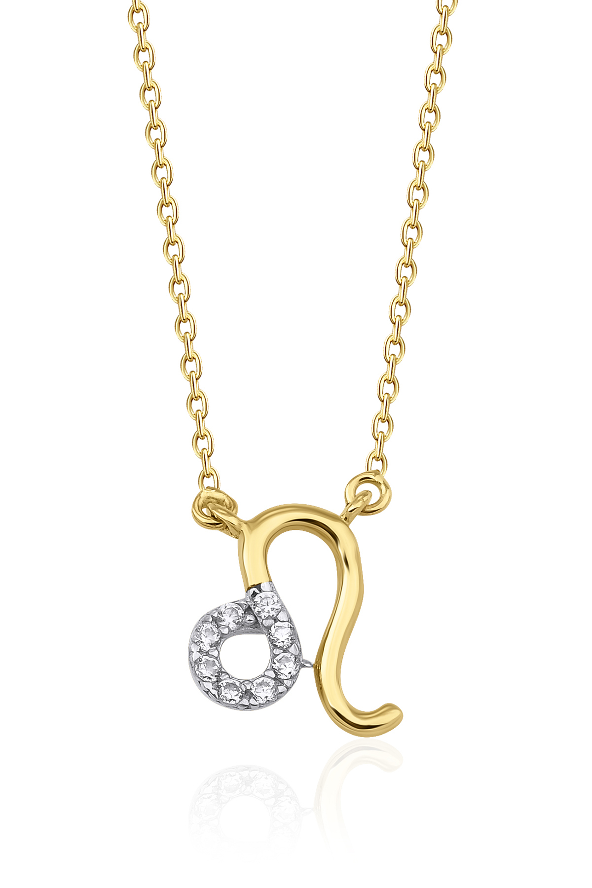 Aslan burcu kolye, burç sembolü tasarımı ve zirkon taş detayları ile öne çıkıyor.