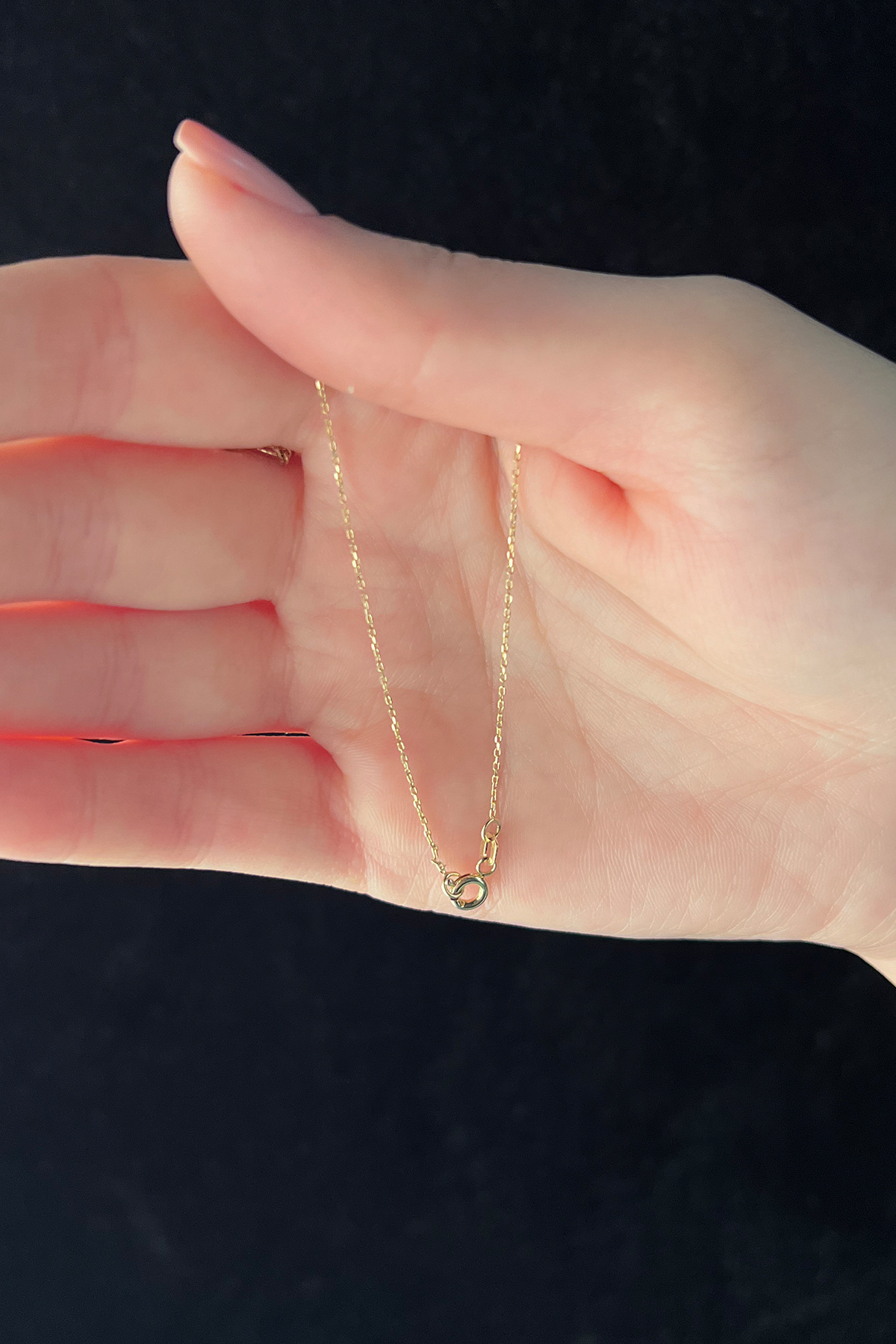 14 Ayar altın kullanılarak üretilmiş bu kolye, hafif yapısı sayesinde günlük kullanım için uygundur.