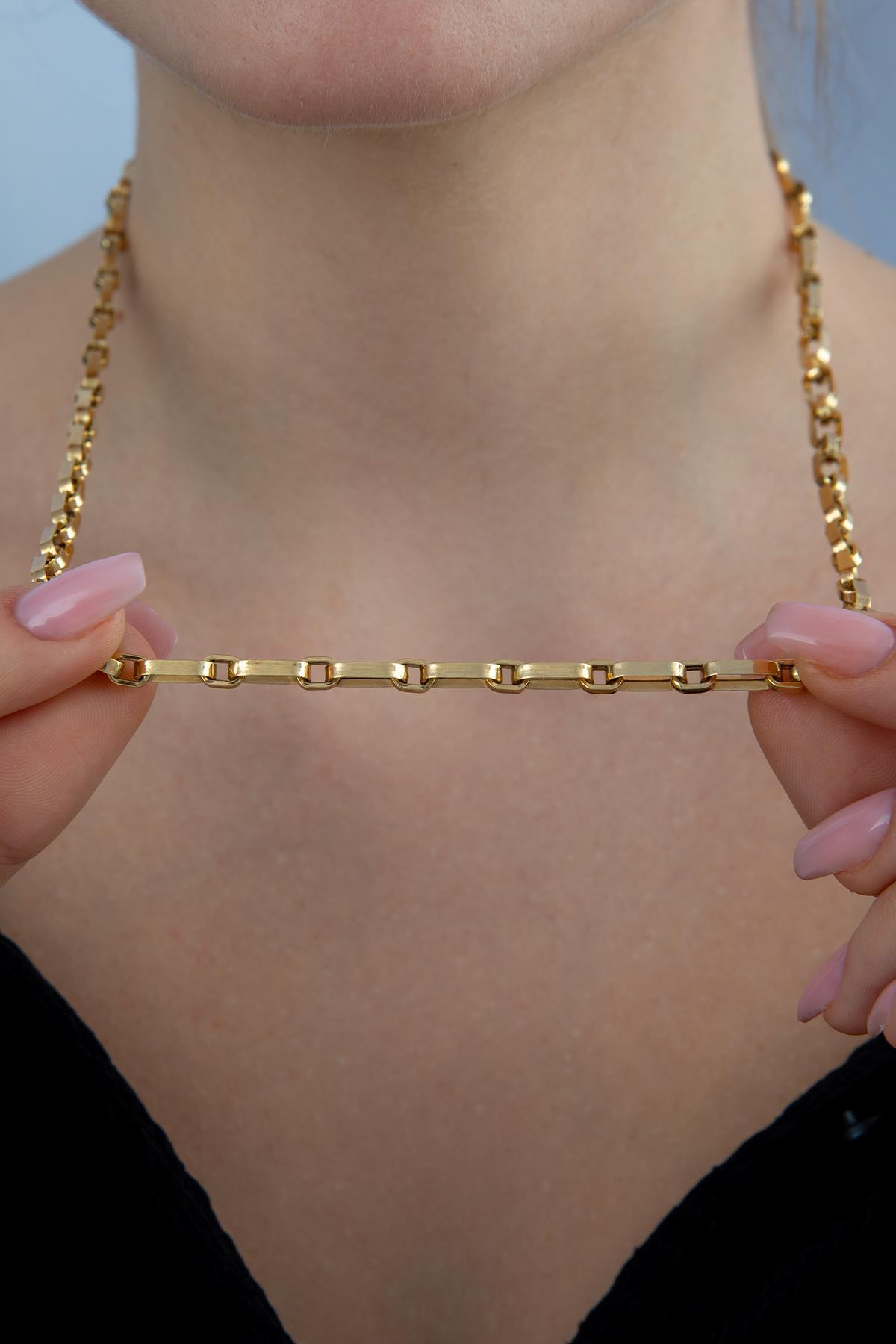 14 Ayar Altın İtalyan Zincir Kolye, 65 cm uzunluğu ve 5 mm genişliği ile günlük kullanıma uygun bir tasarım sunar. 16,22 gram ağırlığıyla dengeli bir kullanım sağlayan kolye, altının parlaklığı ve işçiliği sayesinde uzun süre ilk günkü görünümünü korur. Her kombine uyum sağlayacak sade ve işlevsel tasarımı ile öne çıkar.