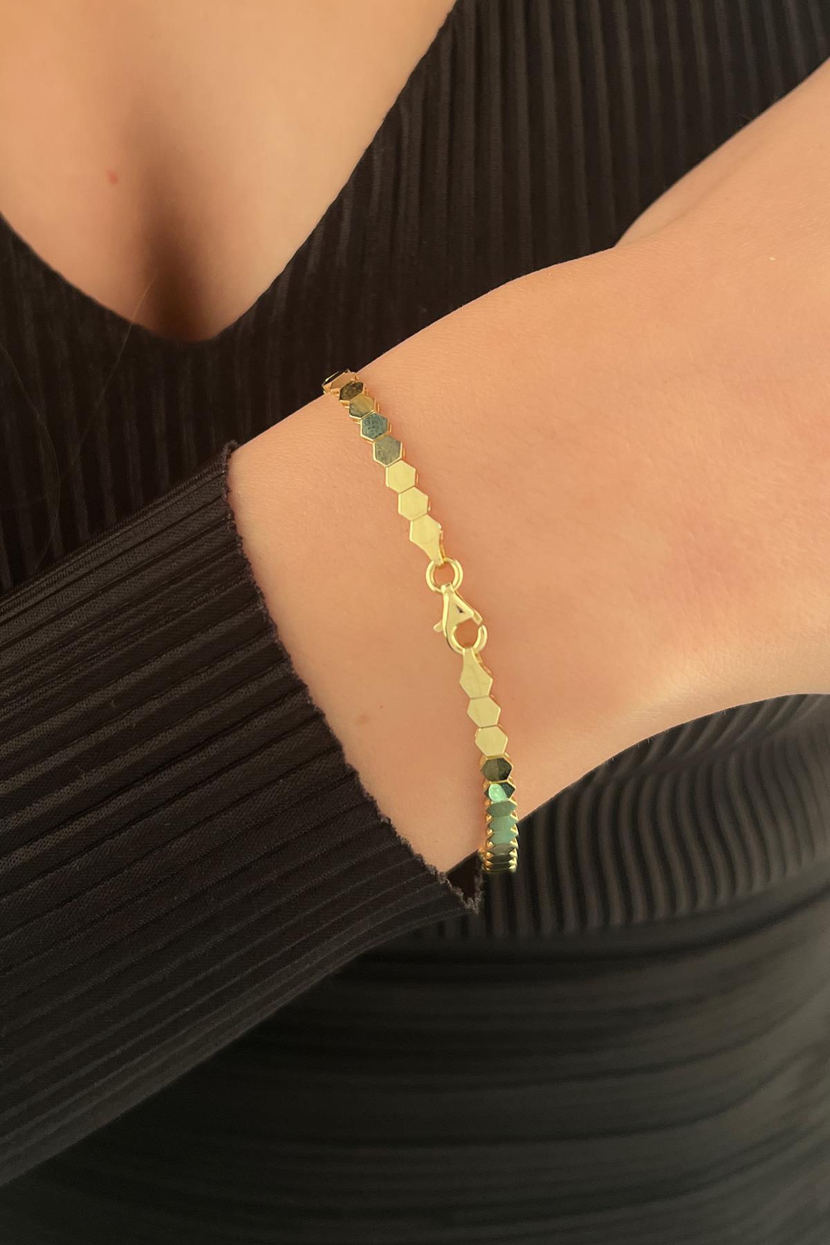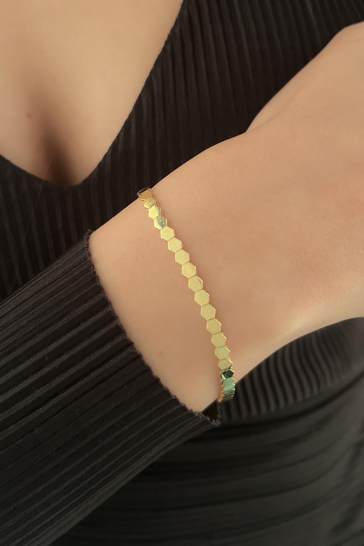 14 Ayar Altın Bal Peteği Bileklik